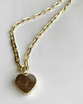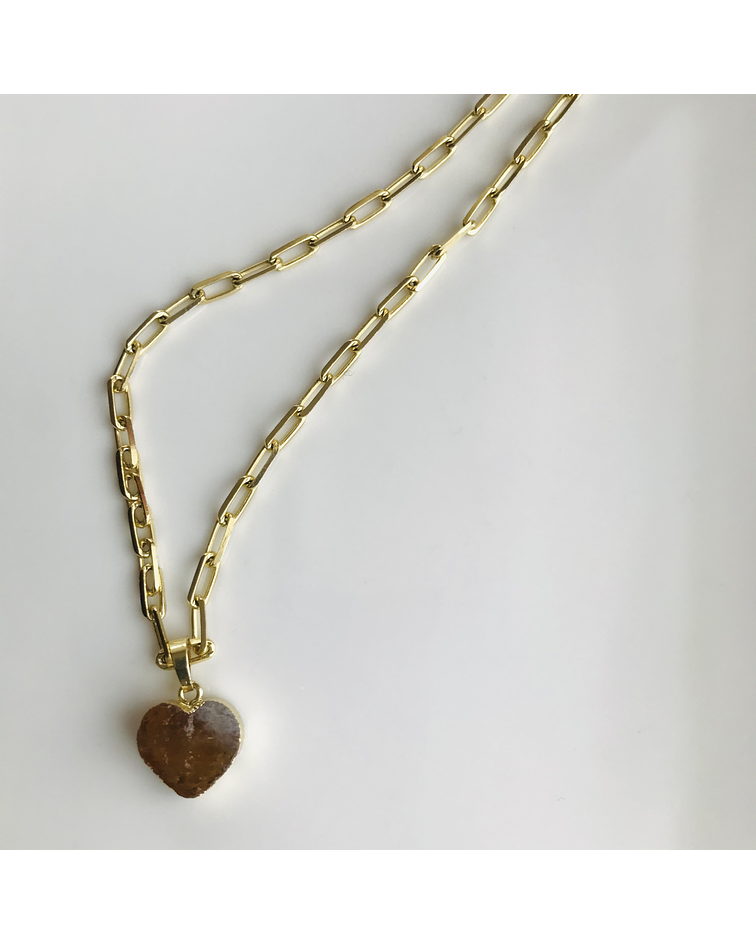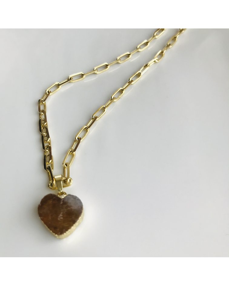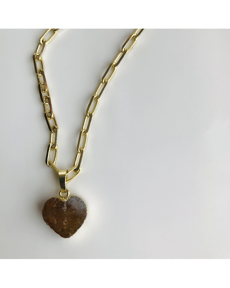Cadena de Enchape Dorado con dije en piedra Natural de forma de corazón en Citrino
